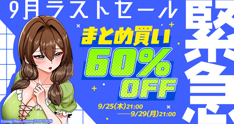 なんと 9/25(木) 21時 ~ 9/29(月) 21時の4日間限定 で、対象作品が まとめ買い60%OFF になるゲリラセールを開催します✨