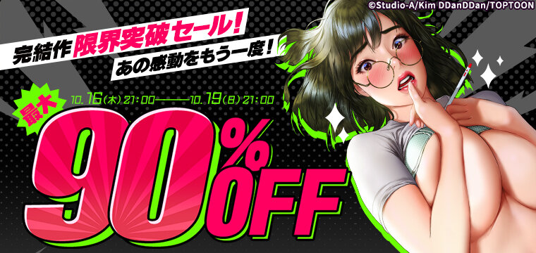~10/19(金)21:00 までの期間限定で、人気作品が 90%OFF に!